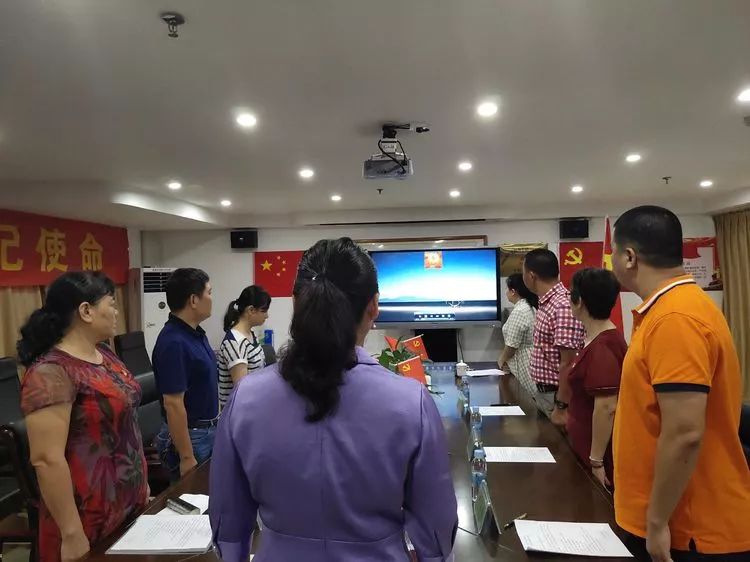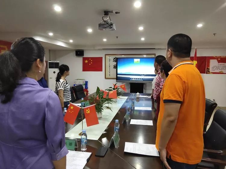 9時35分,支部大會在莊嚴肅穆的中華人民共和國國歌聲中正式開始。全體人員一起高唱國歌。